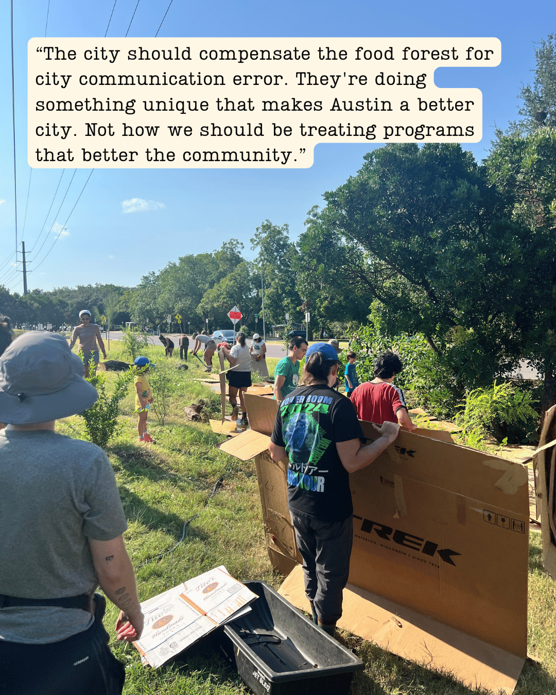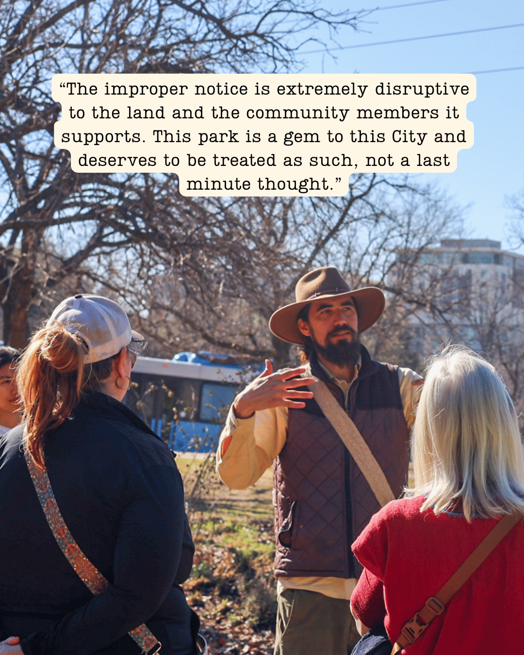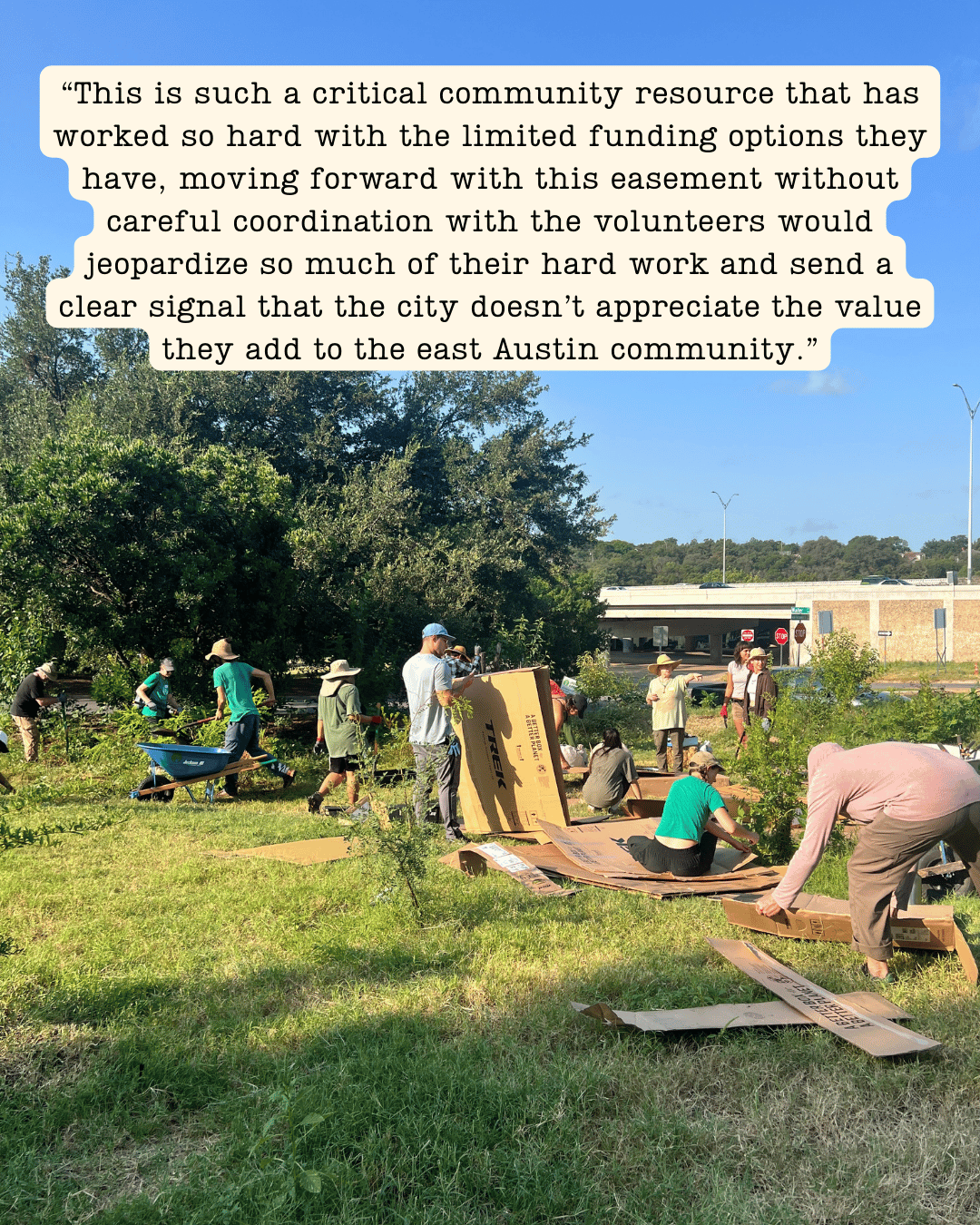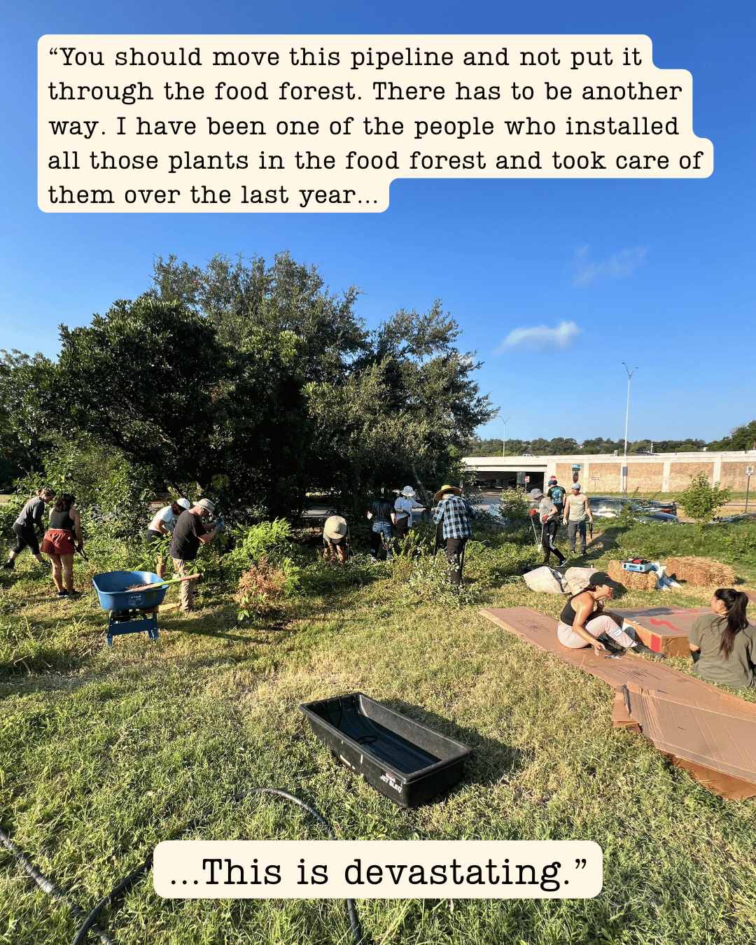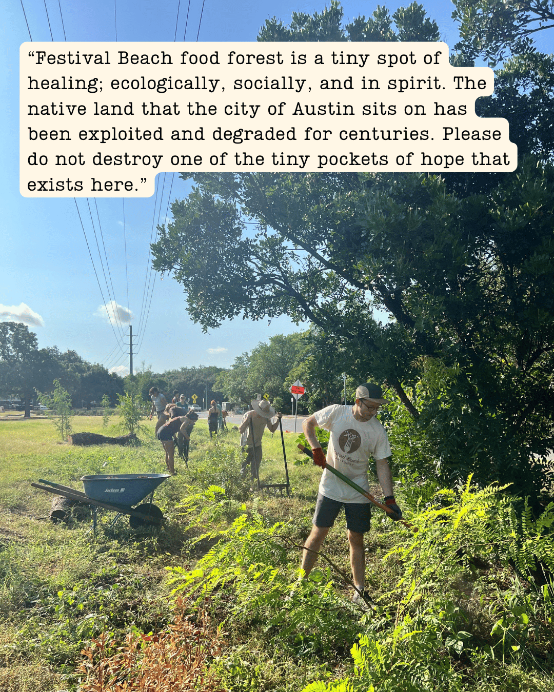 We are in this for the long haul, and we will continue to keep this page updated as we move forward. The path to restoration is not yet clear, and we expect to have additional calls to action in the coming weeks. The I-35 TxDOT project will continue to impact the forest and the surrounding areas. Construction is set to last for up to a decade and the damage for many more decades to come. We must ensure the City is taking care of its public spaces and its people. To do this, we need your enduring support.