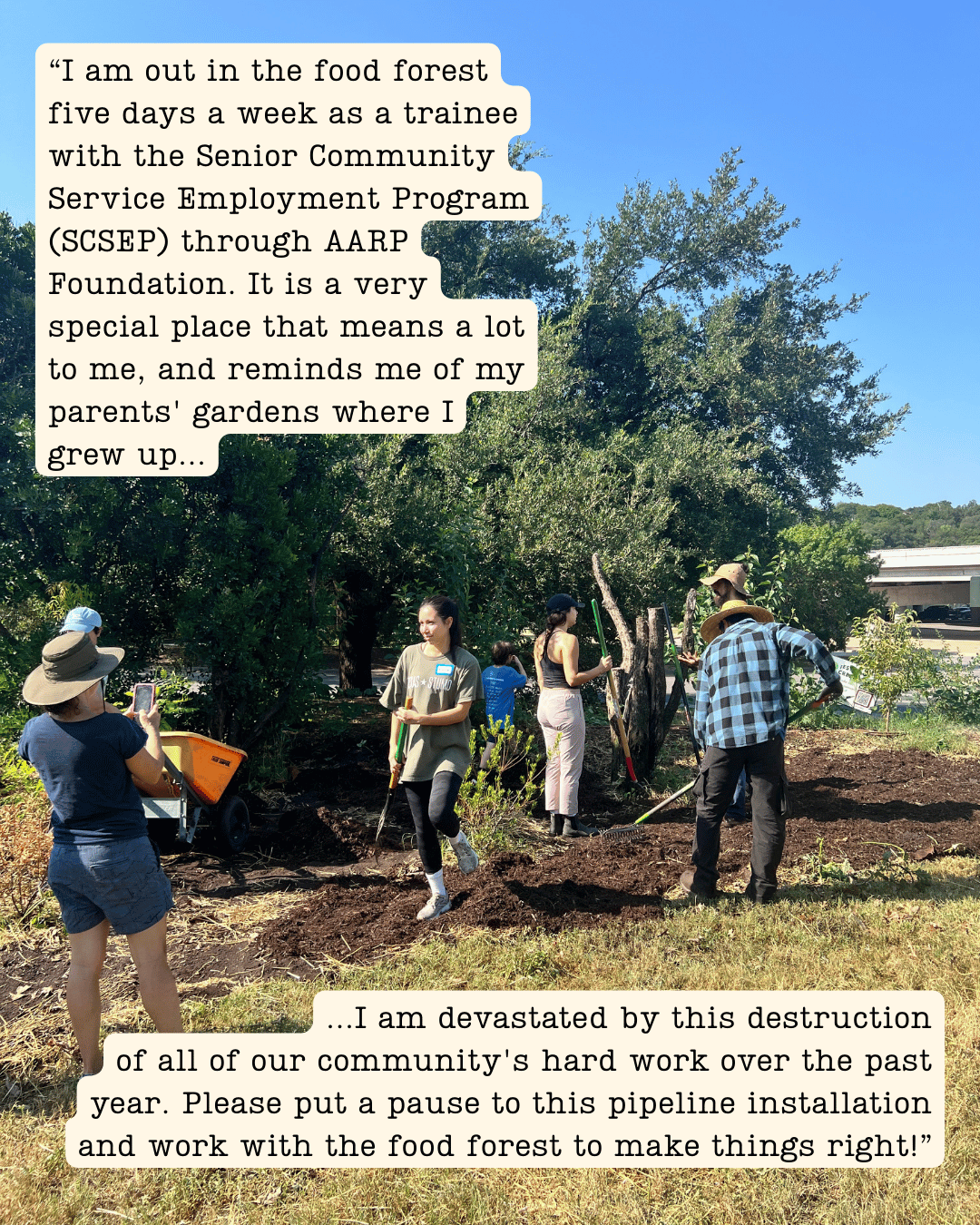 We are grateful for every person who signed our petition, helped out at a workday, showed up to speak or support at a meeting, and contacted City Council or Parks Board members on the Food Forest’s behalf. Thank you for being part of our community and working with us to steward this land with dignity and respect.